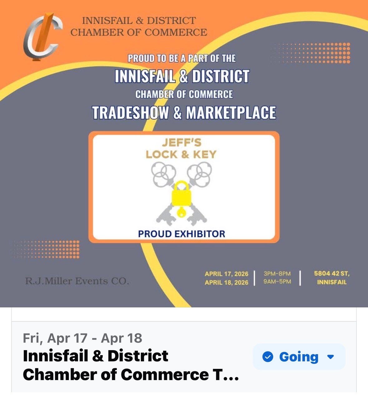 Picture on the left is my booth at the Innisfail Trade Show 2025. Below is my own special key chain, free with a new set of keys cut.